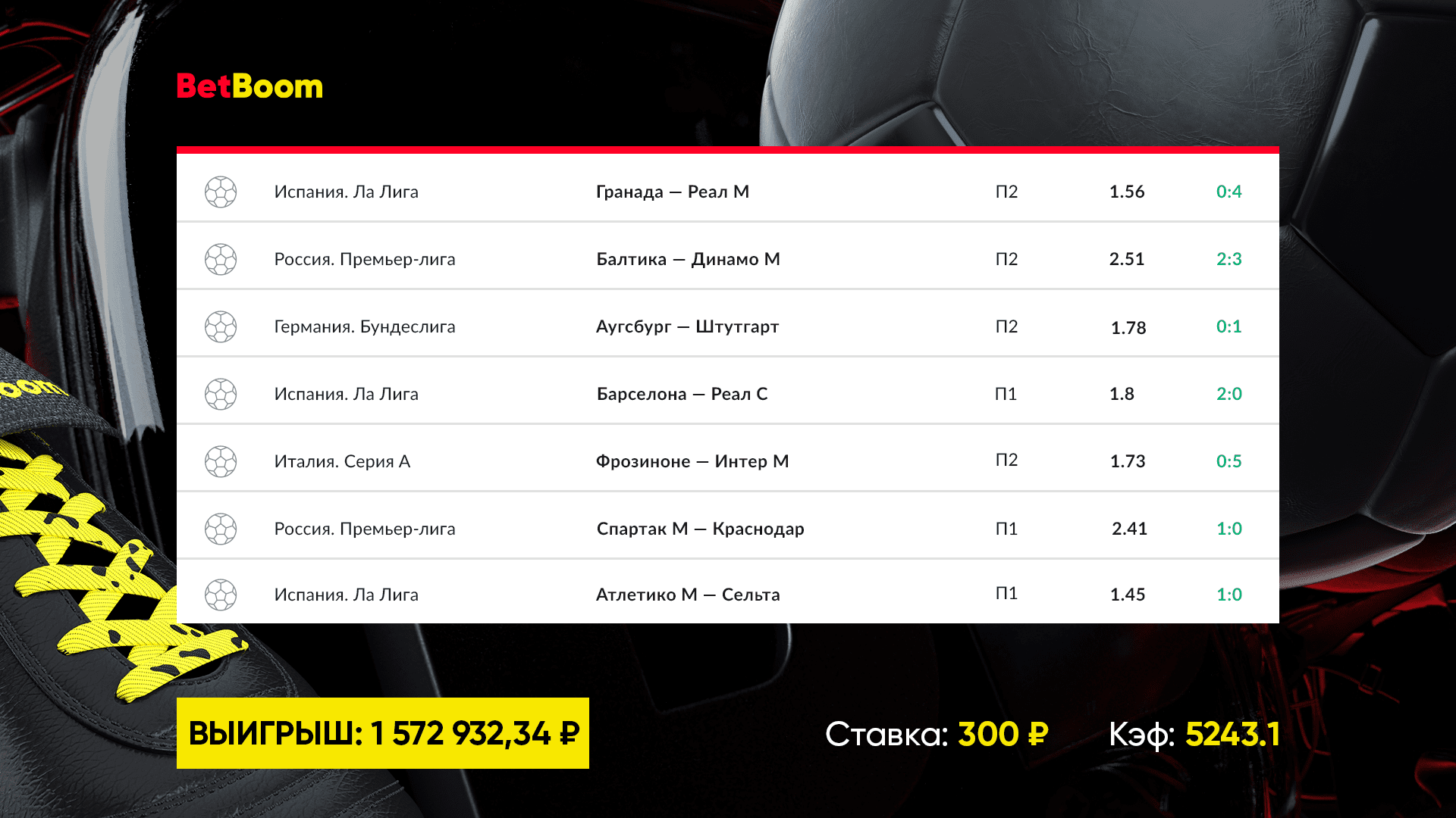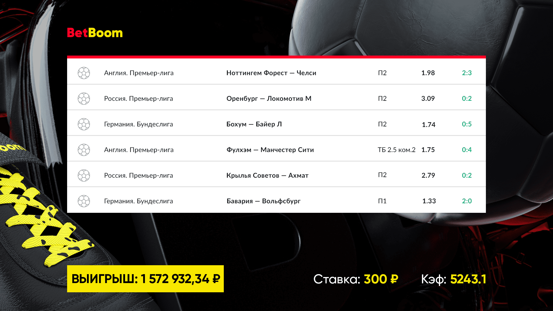 Клиент BetBoom собрал в экспрессе 13 футбольных матчей: 300 рублей превратились в 1 500 000!
