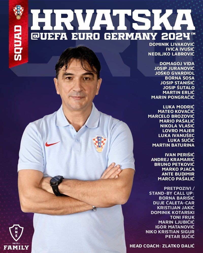 Объявлен предварительный состав сборной Хорватии на Евро-2024. Главный тренер Златко Далич направил приглашение 38 игрокам.