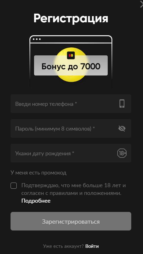 Чтобы сделать ставки на спорт в БК BetBoom, необходимо пройти процесс регистрации на официальном сайте или в мобильном приложении. Регистрация в BetBoom занимает несколько минут. Пользователю нужно ввести свой номер телефона, придумать пароль, указать дату рождения, а также подтвердить достижение совершеннолетия и согласие с правилами БК. После этого игрок должен подтвердить свой номер путем ввода кода из СМС.