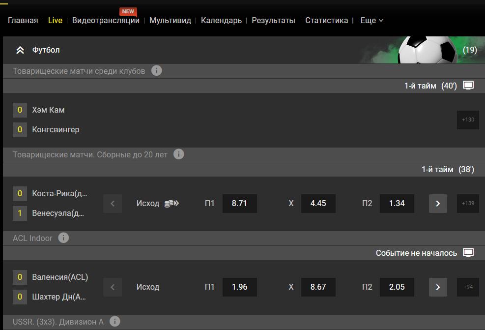- В этом разделе можно ставить на спорт в режиме реального времени.