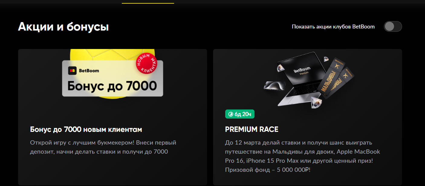 - Акции и бонусы. Игроки также могут ознакомиться с актуальными акциями и бонусами, которые предлагает БК BetBoom.