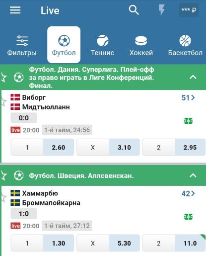 | Виды спорта | Футбол, Теннис, Баскетбол, Волейбол, Хоккей, Настольный теннис, Киберспорт, Бильярд, Автоспорт, Гандбол, Бокс, Смешанные единоборства, Американский футбол, Бейсбол, Зимние виды спорта, Регби, Шахматы, Водные виды спорта, |