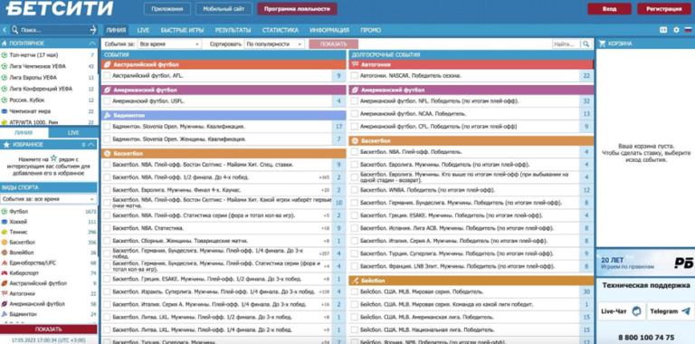 | Поддержка | support@betcity.ru; горячая линия 8 800 100 74 75; онлайн-чат |