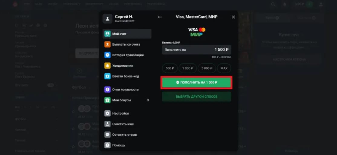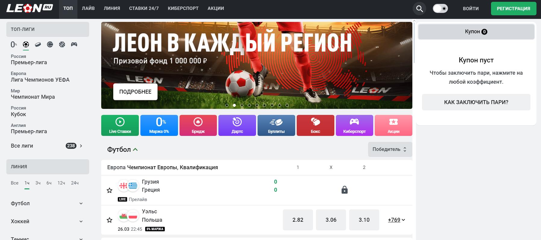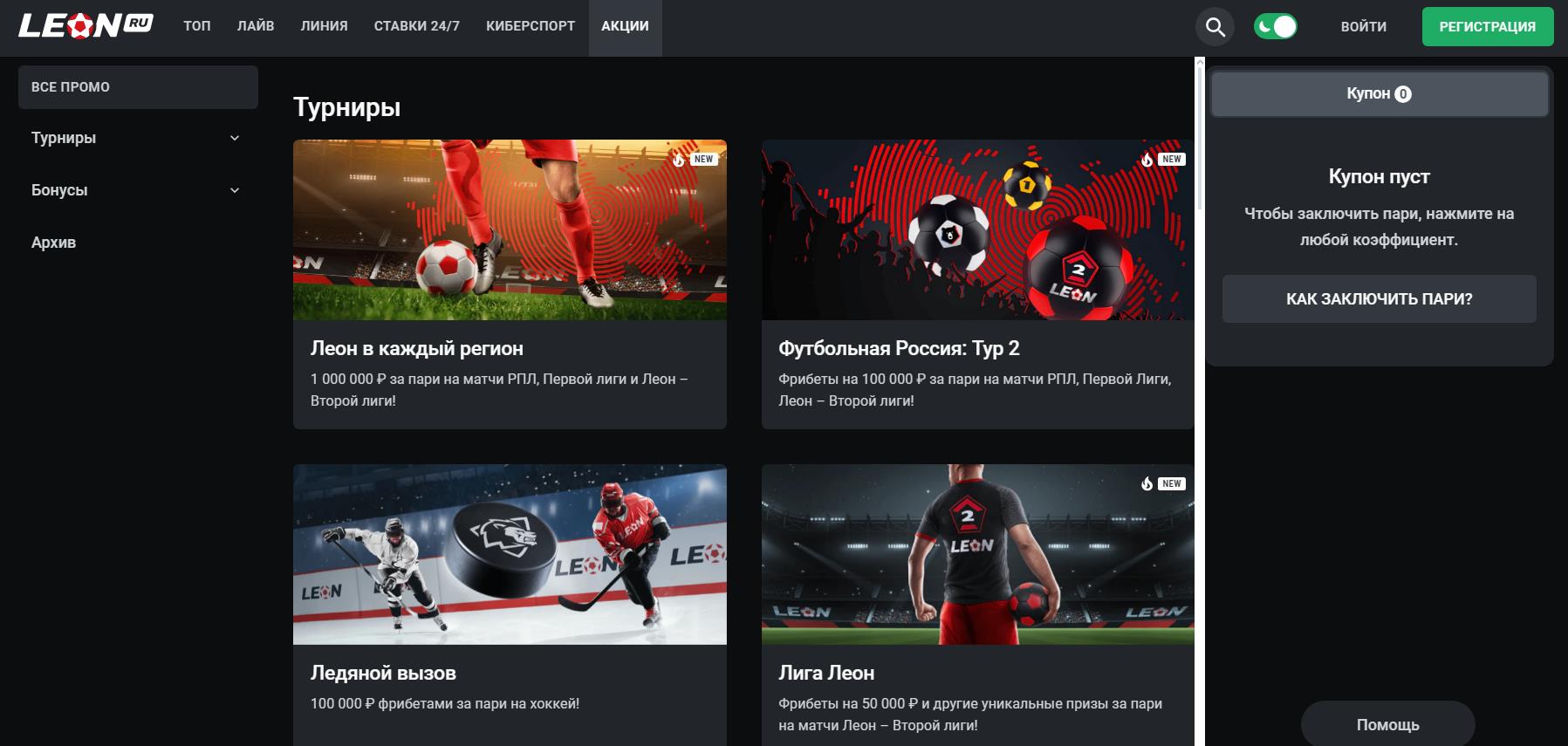 Регистрация на официальном сайте БК «Леон»