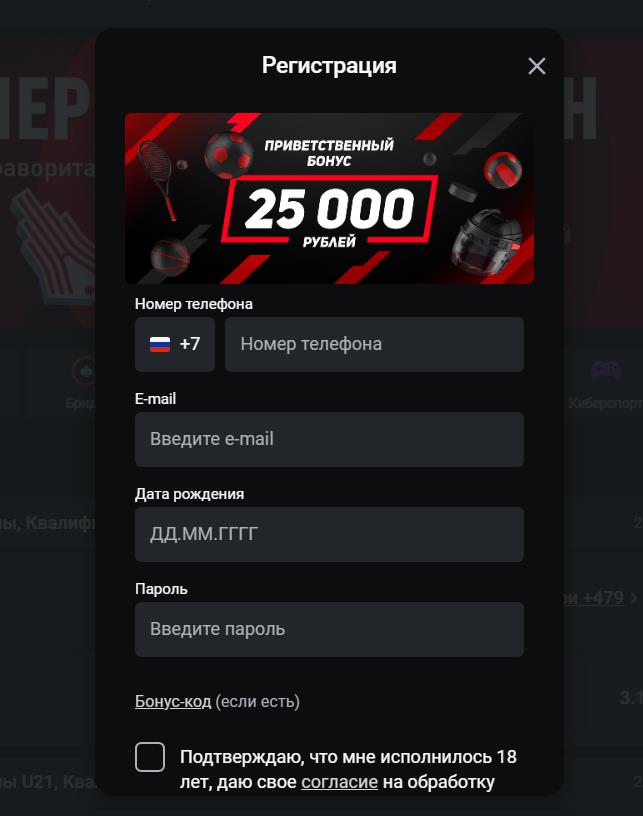 Не забудьте ввести бонускод, если он есть. Он принесет полезные призы. Также нужно дать согласие на обработку личных данных, согласиться с правилами БК и подтвердить совершеннолетие. Все это делается установкой галочки в чекбоксе, который находится в нижней части регистрационной формы.
