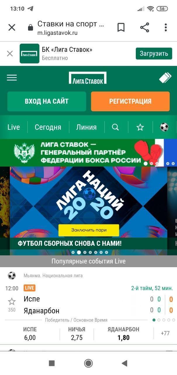 Приложение БК Лига ставок для смартфонов