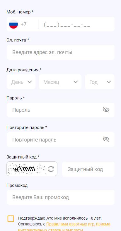 - Подтвердить совершеннолетие и согласие с правилами букмекера.