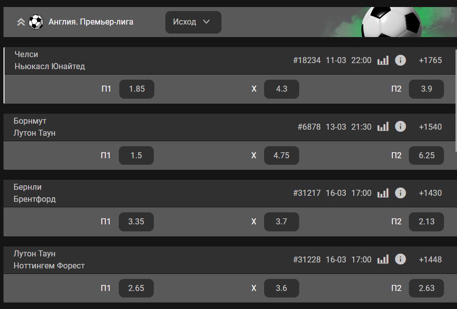 Количество рынков для ставок варьируется в зависимости от популярности события. Игрокам может быть доступно даже несколько тысяч маркетов в линии на топовые футбольные матчи.