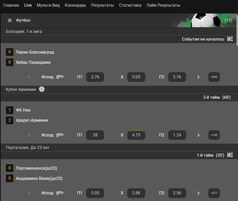 - Лайв результаты – игроки могут следить за матчами в режиме реального времени.