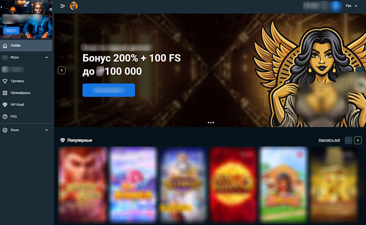Первое, что встречает посетителя при входе на главную страницу Baboss Casino, — это лаконичный и стильный дизайн в темных тонах, создающий атмосферу комфорта и сосредоточенности. Минималистичный подход к оформлению делает навигацию интуитивно понятной. На стартовом экране сразу отображается информация о приветственном бонусе, что привлекает внимание новых игроков.