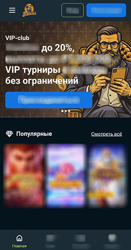 Мобильный интерфейс немного отличается от десктопной версии: в нижней части экрана расположена панель быстрого доступа к ключевым разделам (каталог, бонусы, касса), а главное меню открывается через кнопку в верхнем левом углу. Функционал мобильной версии полностью повторяет возможности основного сайта: регистрация, пополнение счета, активация бонусов, запуск игр и общение со службой поддержки.