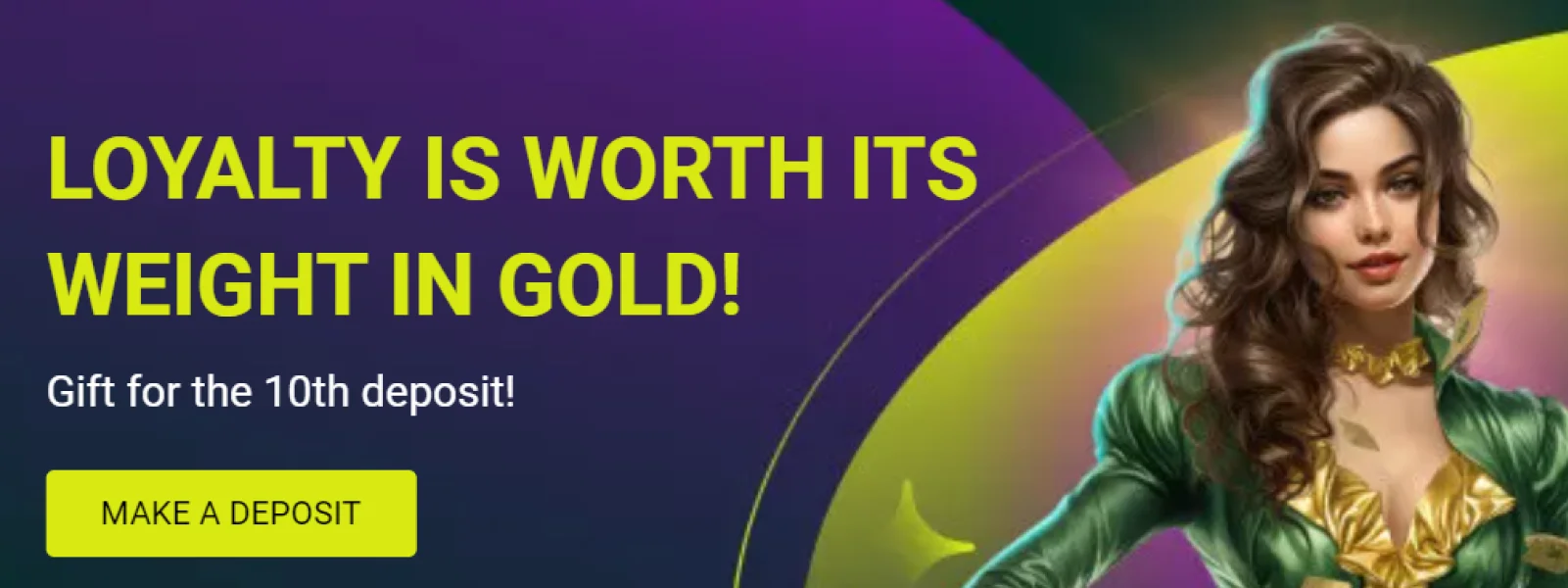 Бонус за 10-й депозит — 50% к сумме пополнения от 15 евро и 100 фриспинов, которые можно использовать в слоте Mancala Quest. Максимальная сумма бонуса — 300 евро. Вейджер также составляет х35, отыгрыш нужно сделать за 48 часов.